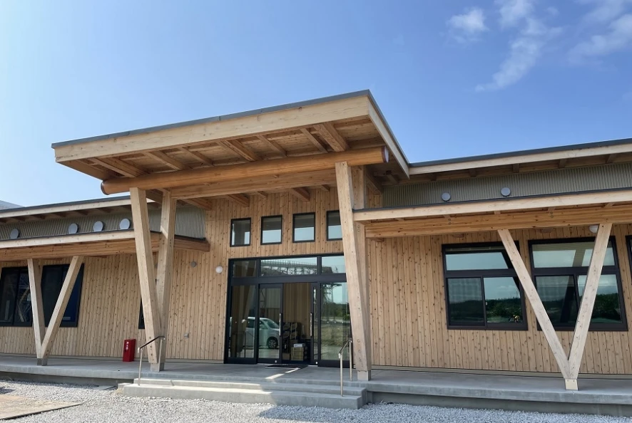 ベイマツ集成材「ラミナ・ビーム」、国産スギとベイマツを組合せた異樹種集成材「ハイブリッド・ビーム」を製造し、全国展開した物流ネットワークを使った即納体制で全国に供給しています。