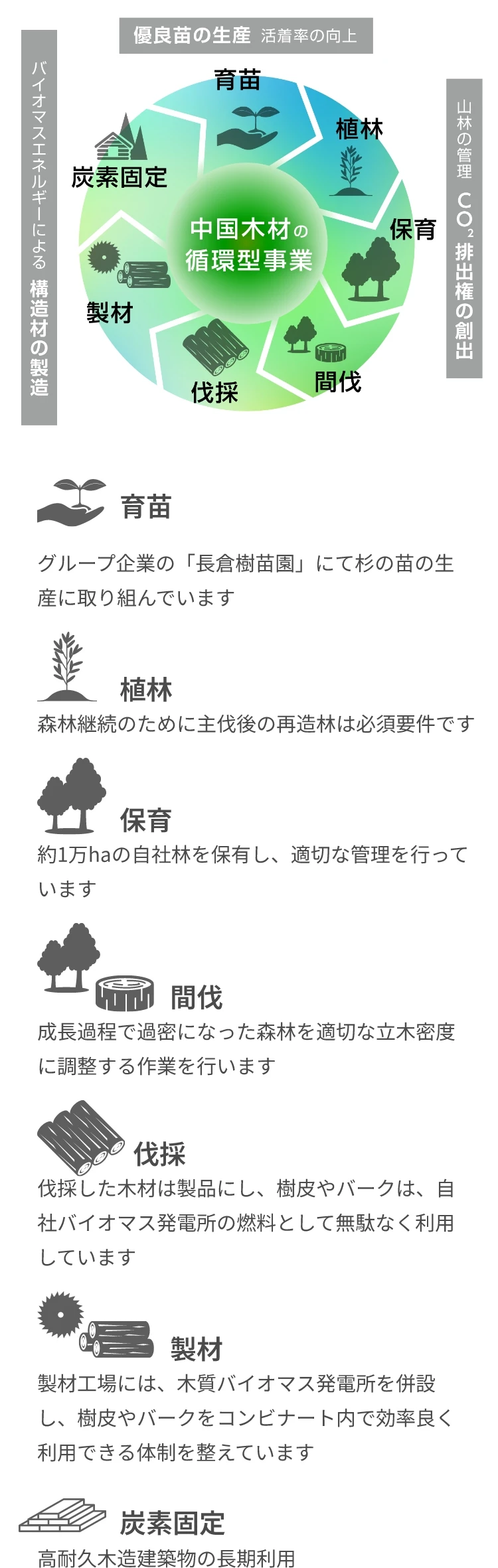 優良種苗の開発と育苗にて、所有する山林への植林と育林を行い、山林のCO2吸収を増進して参ります。
