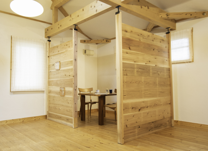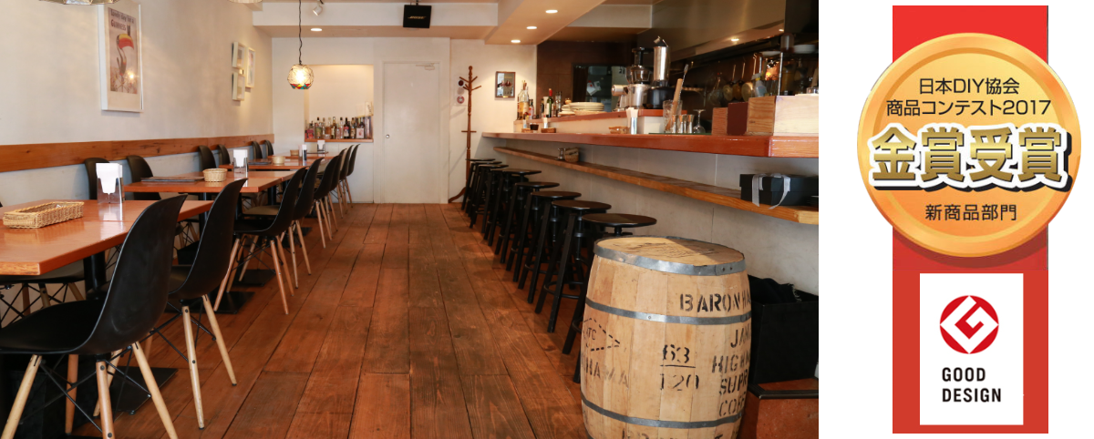 カフェ板とリノベ柱を使えば、簡単な間仕切りから、本格的な改装まで、お部屋やお店やオフィスが「本物の木の空間」に!
