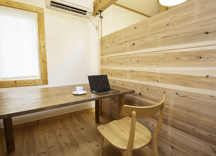 自然や木が身近な豊かな空間。リノベ柱と力フェ板にあなたのアイデアが組み合わされば、DIYの可能性が広がります。