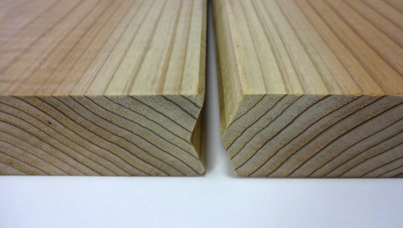 国産のスギ38mm✕89mmの全長にカフェ板が入る高精度な溝加工を施してあります。カット、釘打ち、ビス止め、接着。お好みの色に塗装をしたり、紙やすりで仕上げたり。