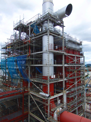 ![]() ■ 天乾とは天然乾燥の略です。杉のラミナは約180日の 天乾後、乾燥機に投入します。 ![]() ■ 50m3釜を30基、200m3釜も12基設置します。現在8基が設置完了 しました。 全て揃うと15,000m3/月の乾燥能力となります。 ![]() ■ 建設中の75tボイラーです。この先に出力18,000kwhの 発電機が装着されます。 ![]() | 【 工場概要 】 所在地 宮崎県日向市竹島町1-101 敷地面積 297,000m2 (約9万坪) 建設計画(予定) 2013年10月 2014年10月 2014年12月 2015年3月 2015年10月 小断面集成材工場 稼働 2017年 工場完成予定図 ![]() |